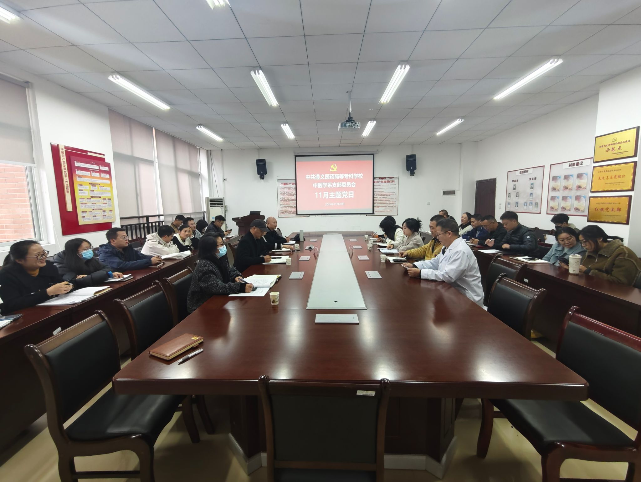 2025年11月20日,图书馆党支部与中医系党支部联合开展专题党课学习活动。活动以“学习・提升・发展・未来”为主题,由中医系党总支书记李冬梅同志主讲,两个支部全体党员参加学习,旨在通过理论共学、经验共享、业务共研,推动党建与业务深度融合,凝聚服务学校高质量发展的合力。